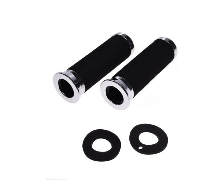 Stylové rukojeti řidítek s chromovaným povrchem. Grip plynu je vyroben přesně dle normy pro plynová pouzdra.