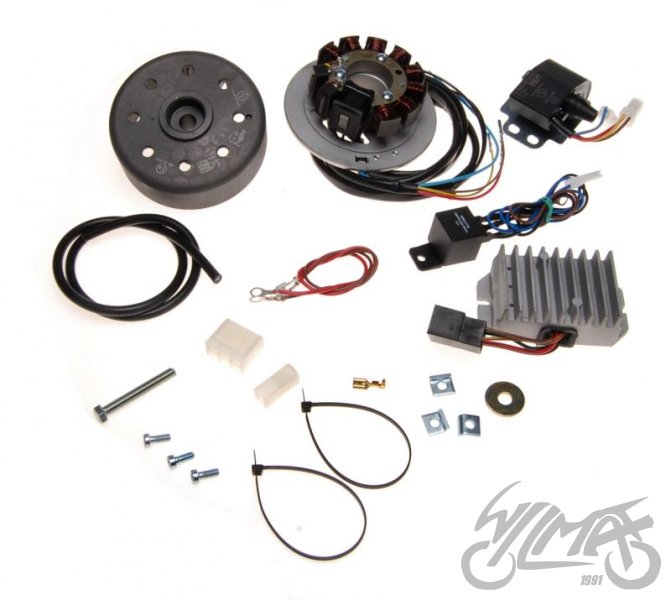 Kompletní elektronické zapalování MZ250 a MZ 251 ETZ. Včetně veškerého elektronického příslušenství. Zapalování je 12V s výkonem 180W.