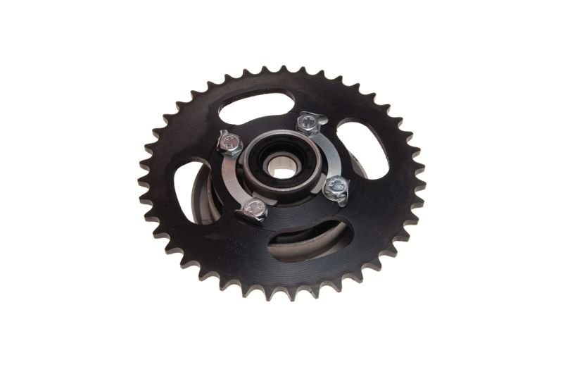 Zadní rozeta motocyklu Jawa Betka 50. Skládá se z unašeče, ozubnice a ložiska uložení.