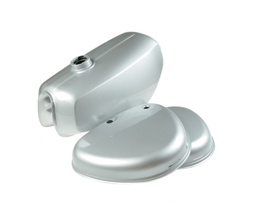 Nádrž Simson S51 s bočními kryty kastlíků. Stříbrná metalíza.