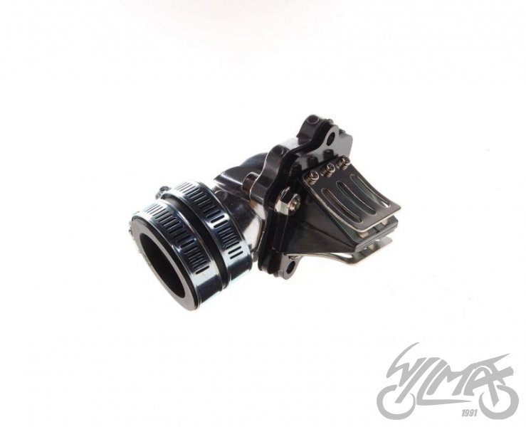 Příruba sání karburátoru pro asijské 2T skůtry Keeway Hurricane. Sportovní koleno sání s klapkovým ventilem.