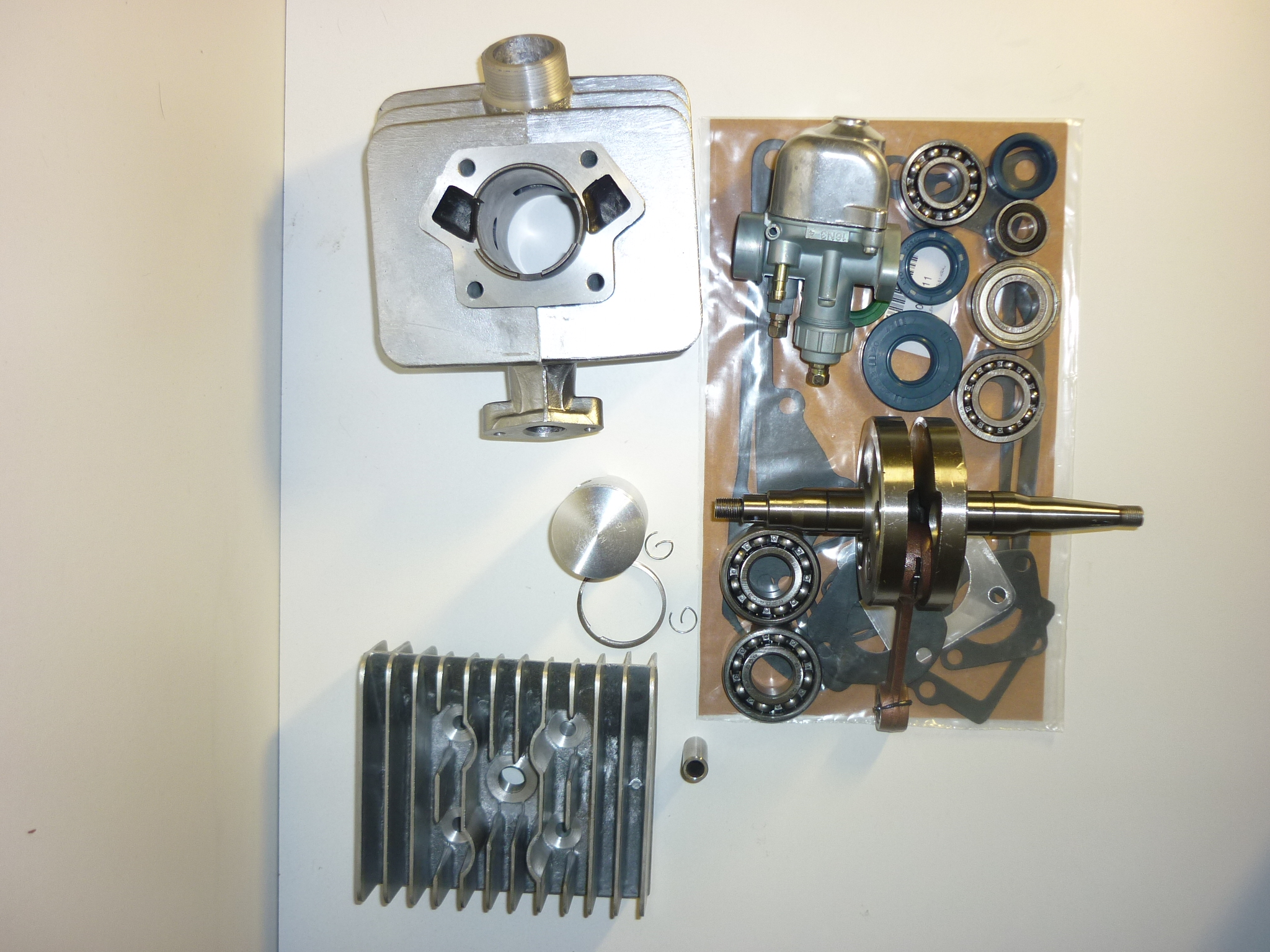 Obsah sady: válec - 50cm3 hlava válce - Almot pístní sada - dvoukroužekklikovka - Wilmat karburátor - Wilmat 16N3 sada těsnění - CXgufera - černá standard ložiska klikovka - original německá DKF ostatní ložiska - DPI, KG, MGK