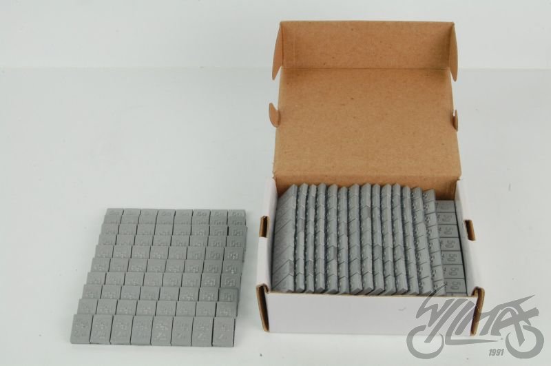 Sada vyvažovacích závaží. V sadě je celkem 400 kusů po 5 gramech. Rozměry závaží 18,5mmx12,5mmx4mm.