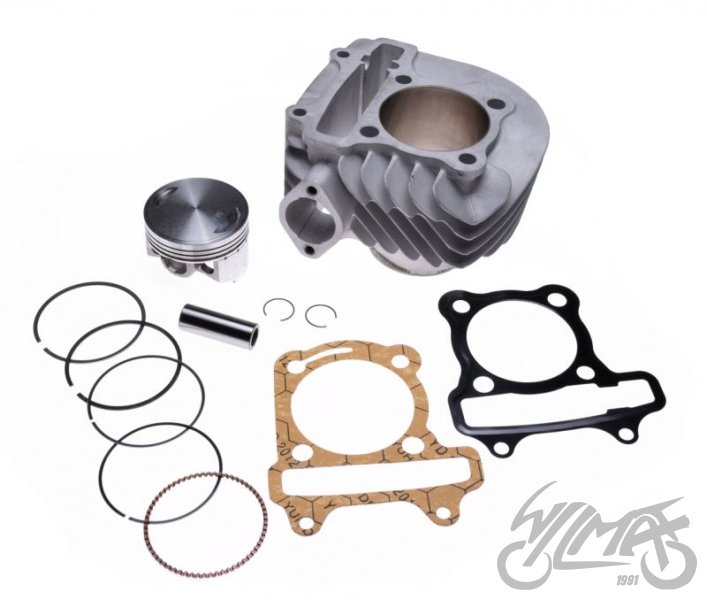 Sportovní válec pro motory GY6 125. Vrtání válce 58,5mm. Válec je opatřen NIKASILEM. Včetně pístní sady a těsnění.