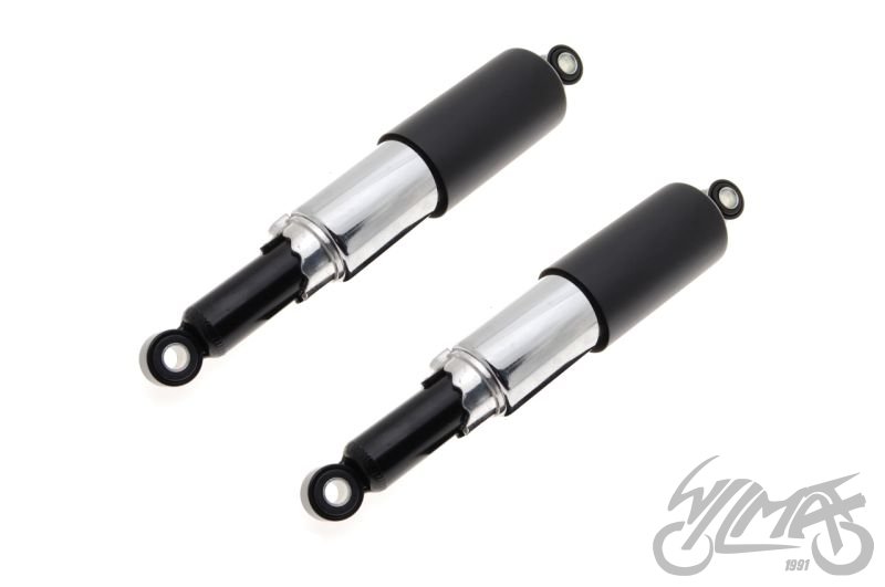 Sada zadních olejových tlumičů pro motocykly. Tlumiče jsou velmi dobře dílensky zpracované. Set se skládá ze dvou tlumičů, které jsou stavitelné. Tlumiče jsou určeny pro univerzální použití. Rozměry jsou uvedeny na foto.