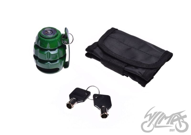 Motocyklový zámek na kotouč motocyklu. Zámek je velmi odolný s ocelovým kaleným čepem průměru 5,5mm a bezpečnostním zámkem. Je dodáván včetně pouzdra.