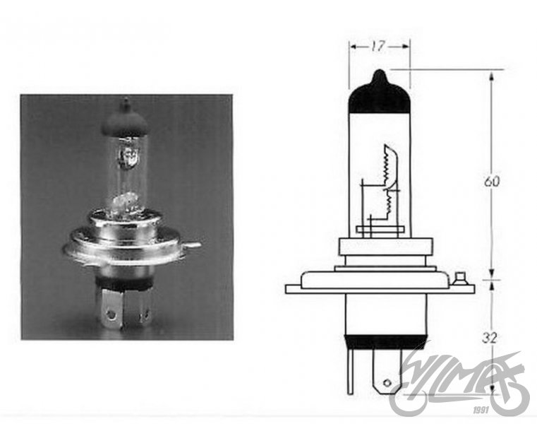 Žárovka 12V 35/35W H4 HS1 P43T - modré sklo60 Kč/ ks50 Kč bez DPH