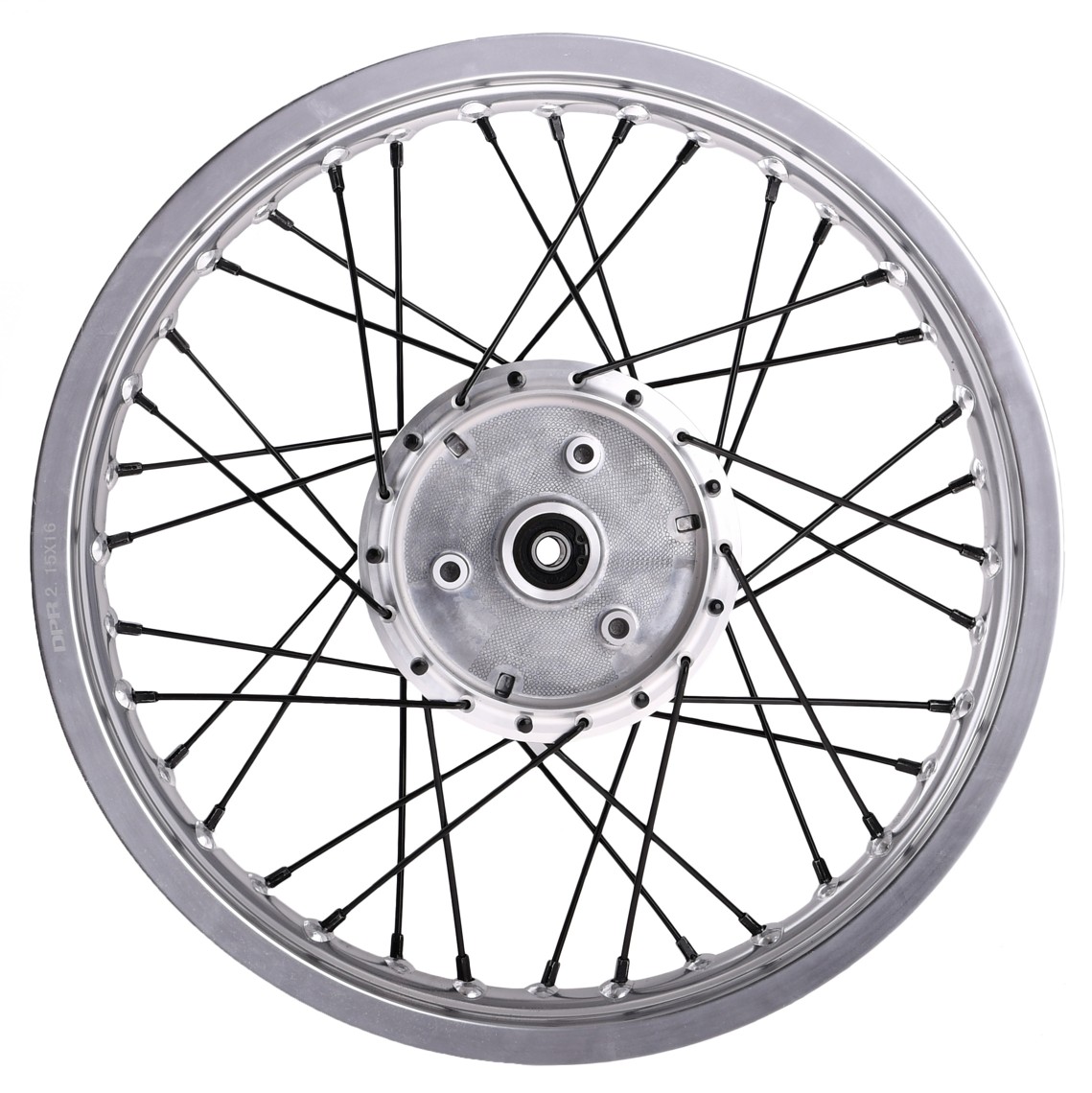 Kompletní kolo motocyklu Simson S50 a S51 s aluminiovým ráfkem. Rozměr ráfku 2,15x16".