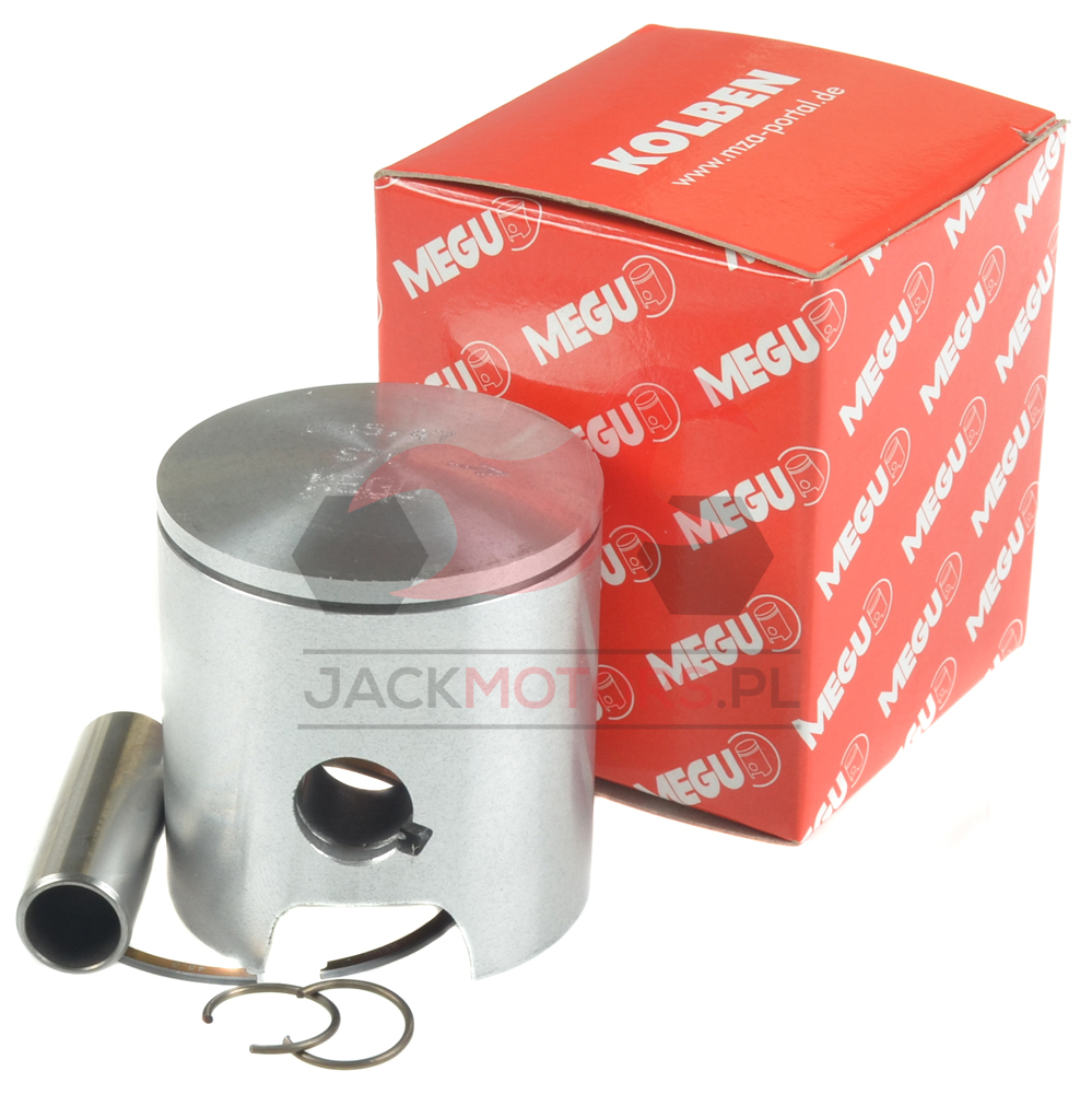 Sportovní jednokroužkový píst vyrobený v německu firmou MEGU. Sada obsahuje píst, kroužek, čep a segrovky čepu. Lehký a odolný píst s kroužkem z tvrdochromovým povlakem. Zlepšuje kompresi a snižuje tření pístu ve válci.