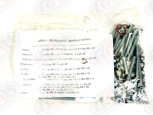 Sada šroubů motoru Jawa 50290 Kč/ sada240 Kč bez DPH